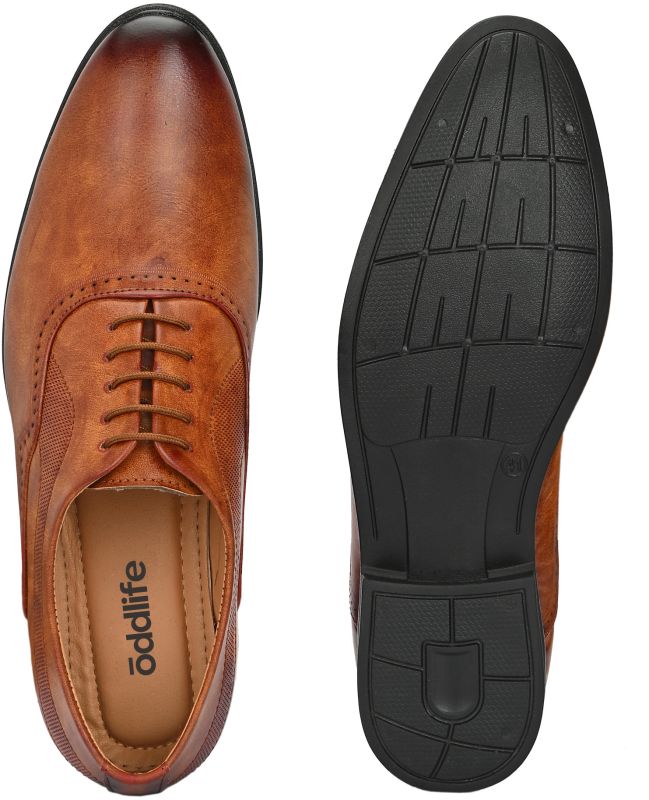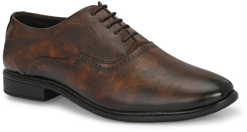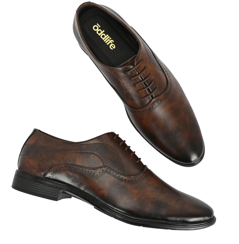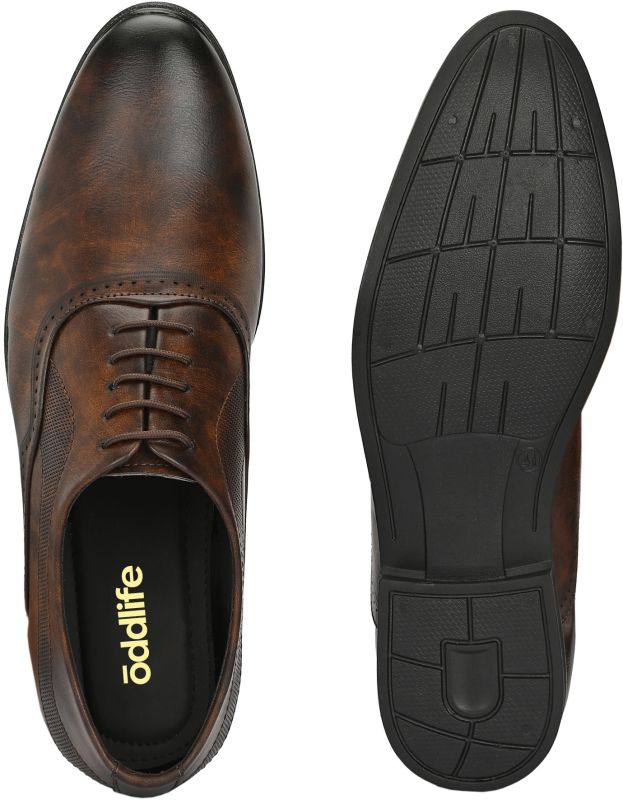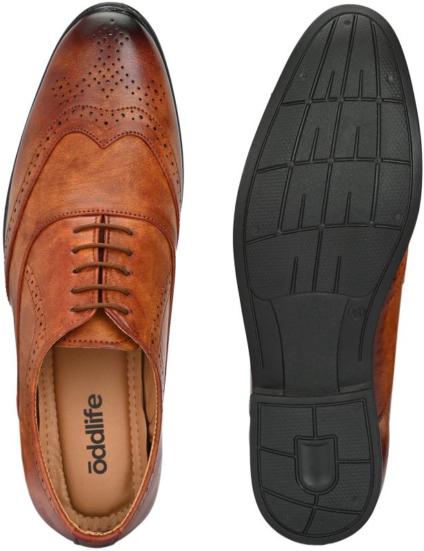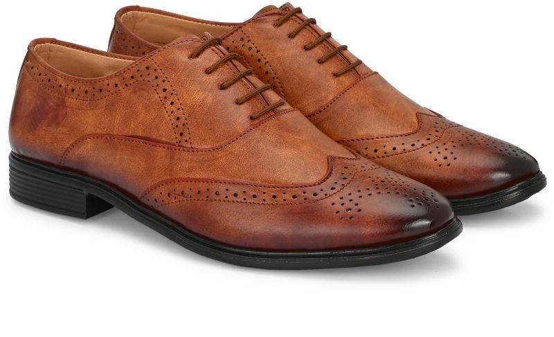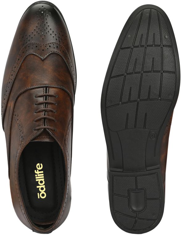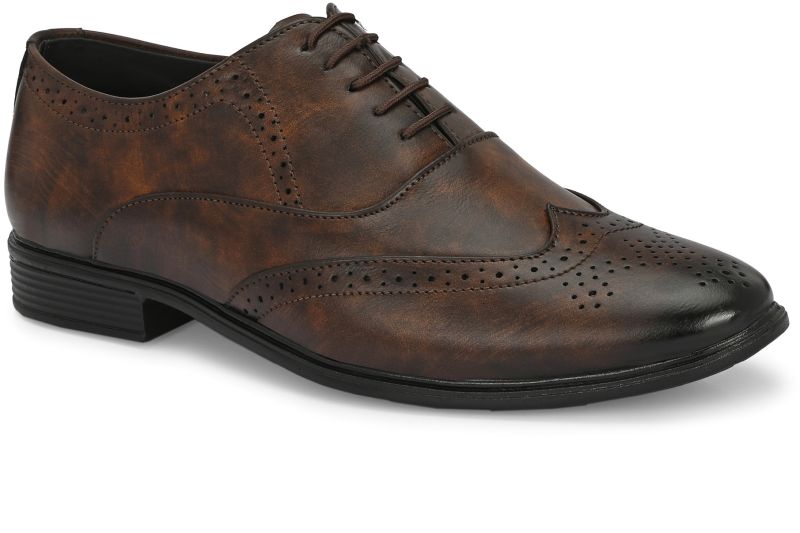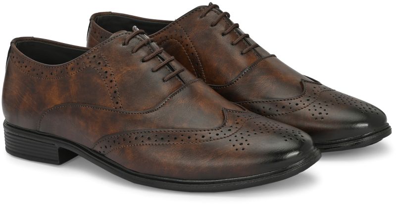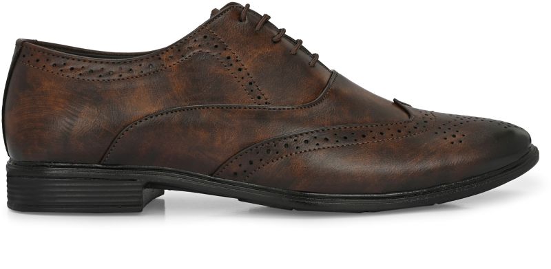 | Upper | Brown Synthetic Leather With Distressed Finish, Brogue Detailing, Lace-Up Closure |