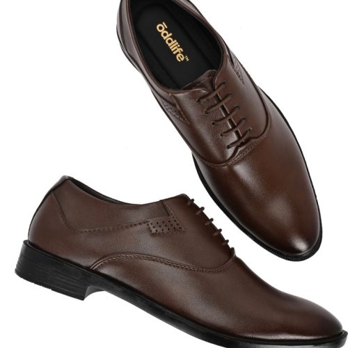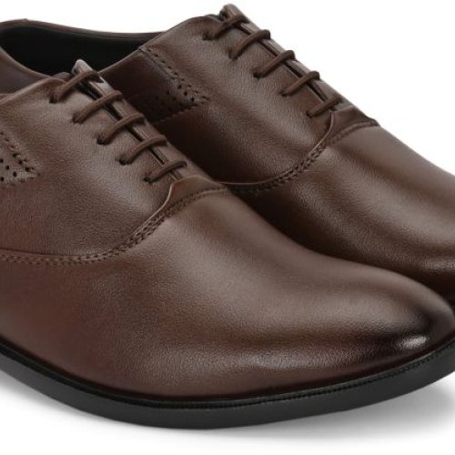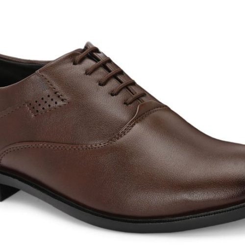 Mens Brown Brogue Sleek Lace-Up Shoes