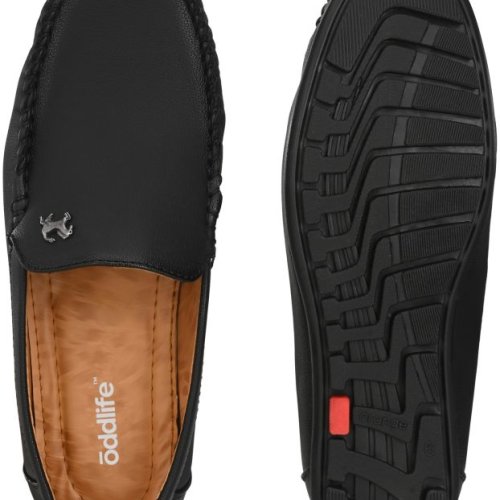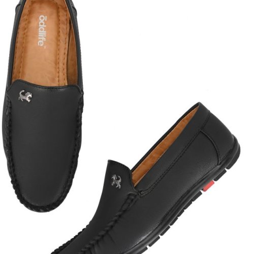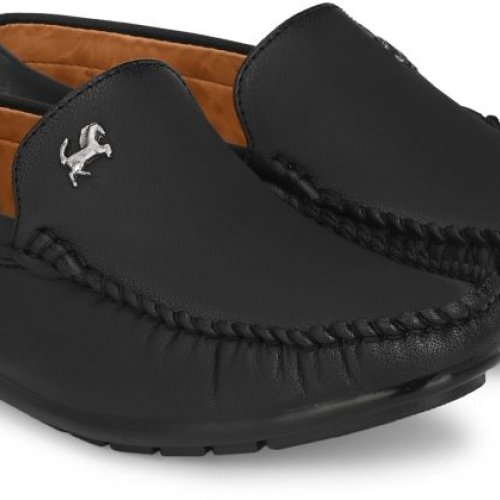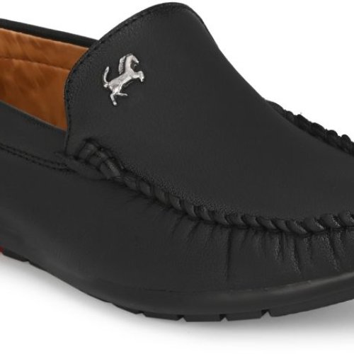 Mens Black Loafer Logo Slip-On Shoes