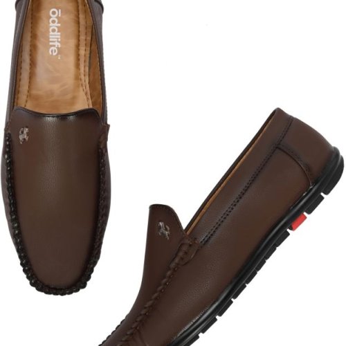 Mens Brown Loafer Logo Slip-On Shoes