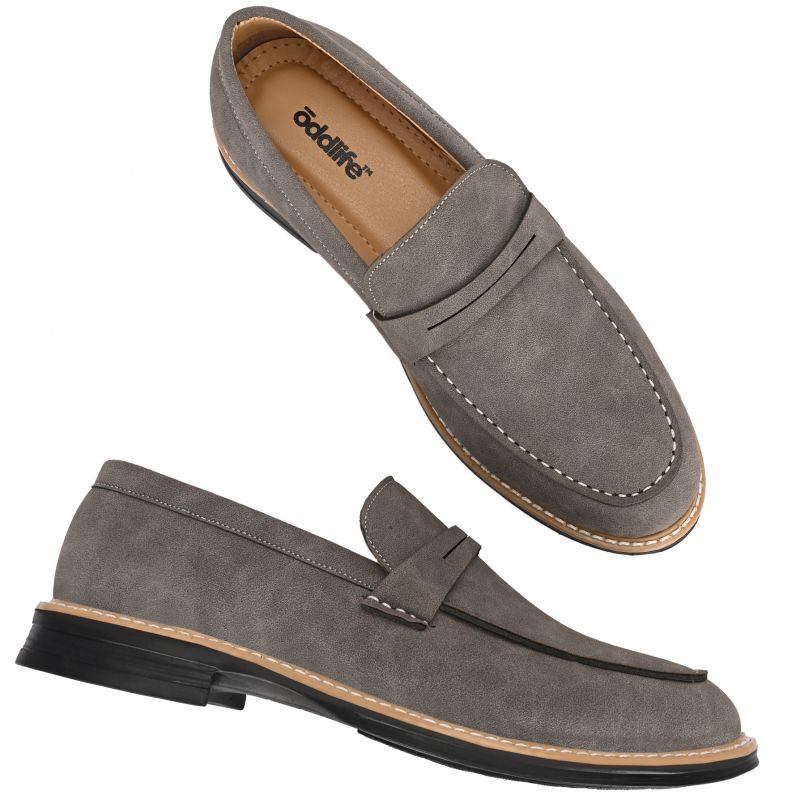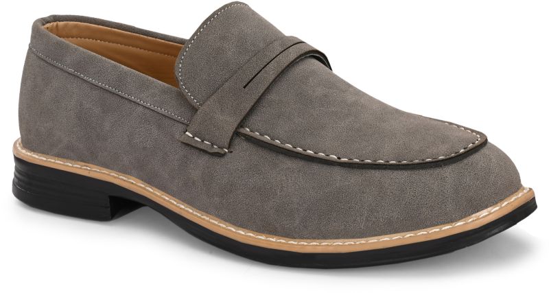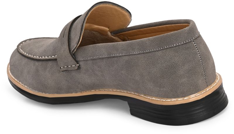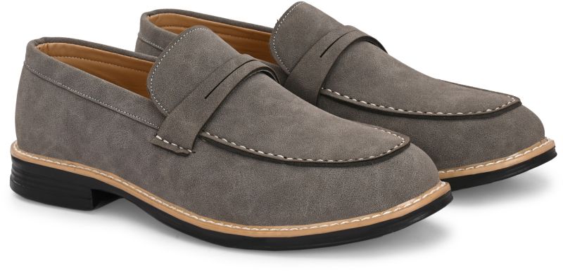 We are a leading manufacturer and supplier offering Men's Gray Loafer Tan-Stitch Penny Strap Shoes with a stylish suede finish synthetic material from India. The shoes feature a classic gray upper with tan stitching, brown lining interior, and a durable PVC sole. Article Code 700GY, suitable for men in sizes 6 to 10. Ideal for office/business wear, these shoes combine comfort and style seamlessly. Elevate your professional look with these high-quality loafers that exude sophistication and craftsmanship.