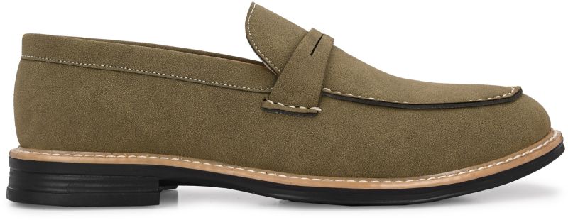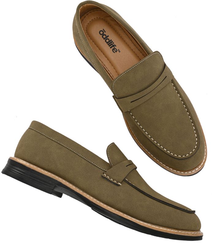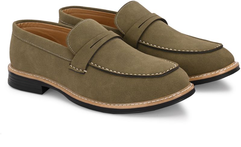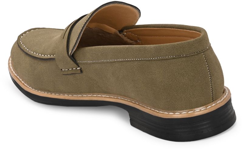 We offer stylish Mens Olive Loafer Earth-Tone Penny Strap Shoes crafted with suede finish synthetic material from India. Article Code 700OG, designed for men in sizes 6 to 10. Featuring a PVC sole, olive green upper with tan stitching, and brown lining interior, these shoes are ideal for the office/business category. Elevate your look with these high-quality, comfortable loafers that exude sophistication and style.
