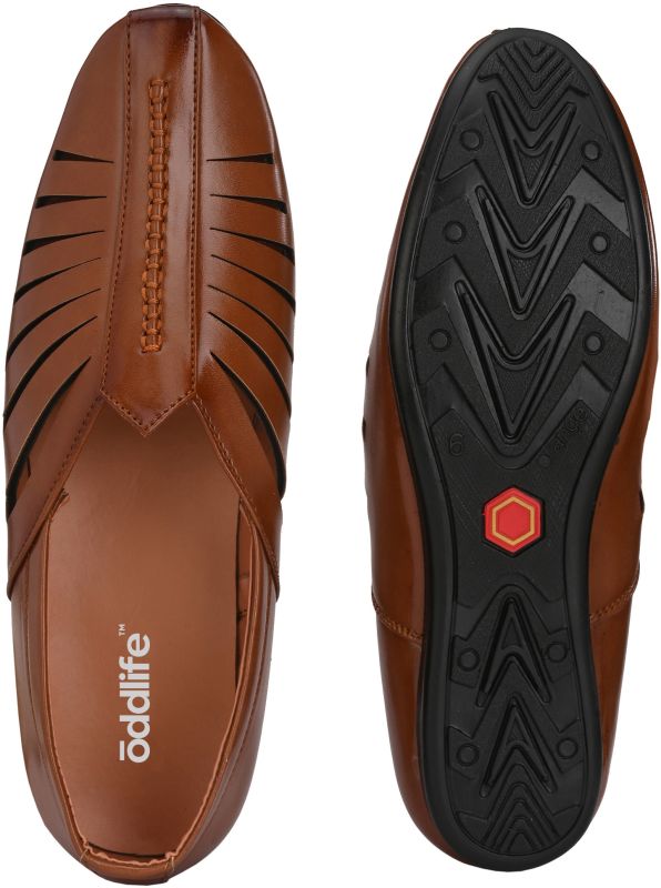 | Upper | Tan With Vertical Cut-Out Slits And Vertical-Cut Slip-On Closure |